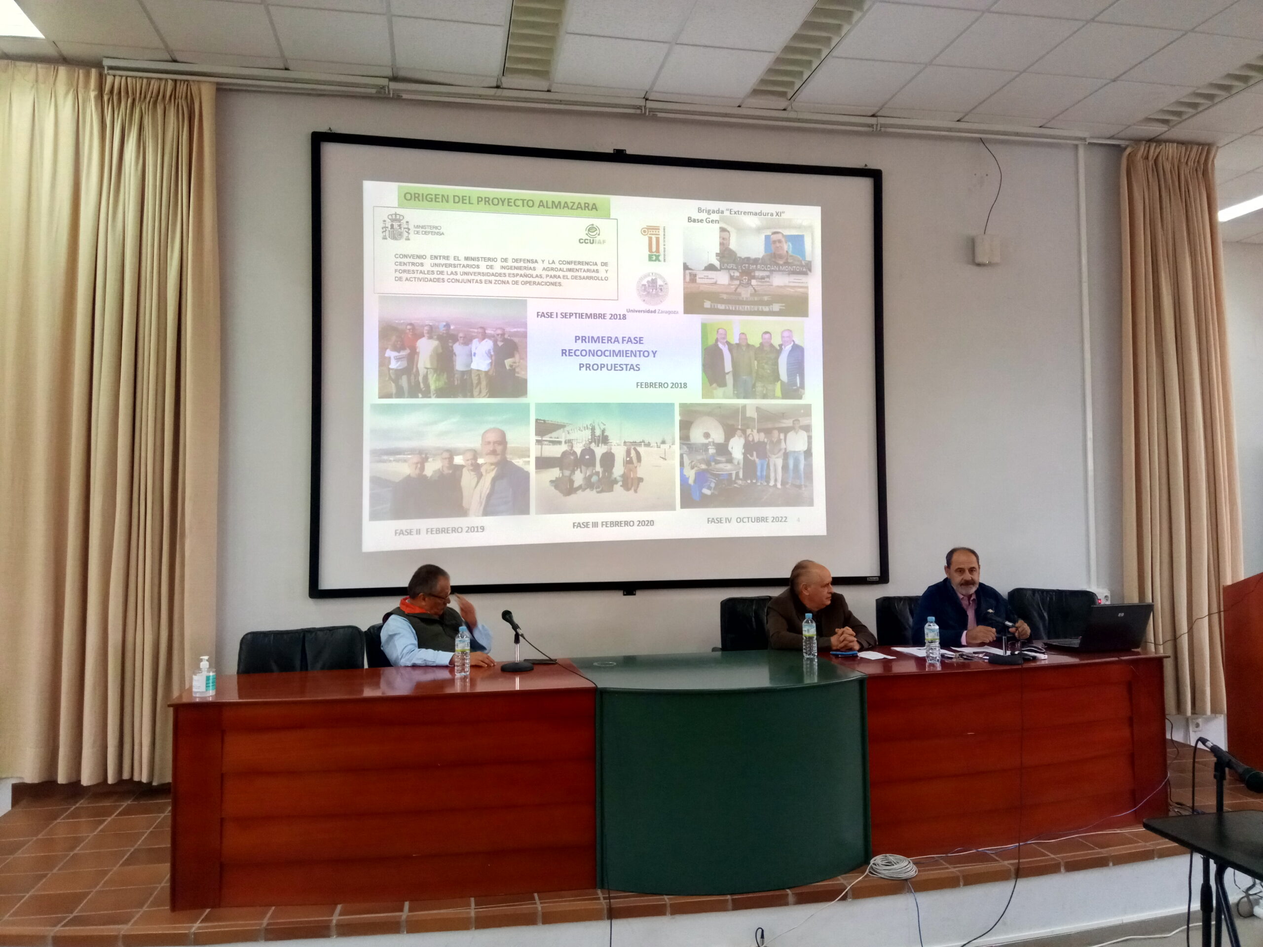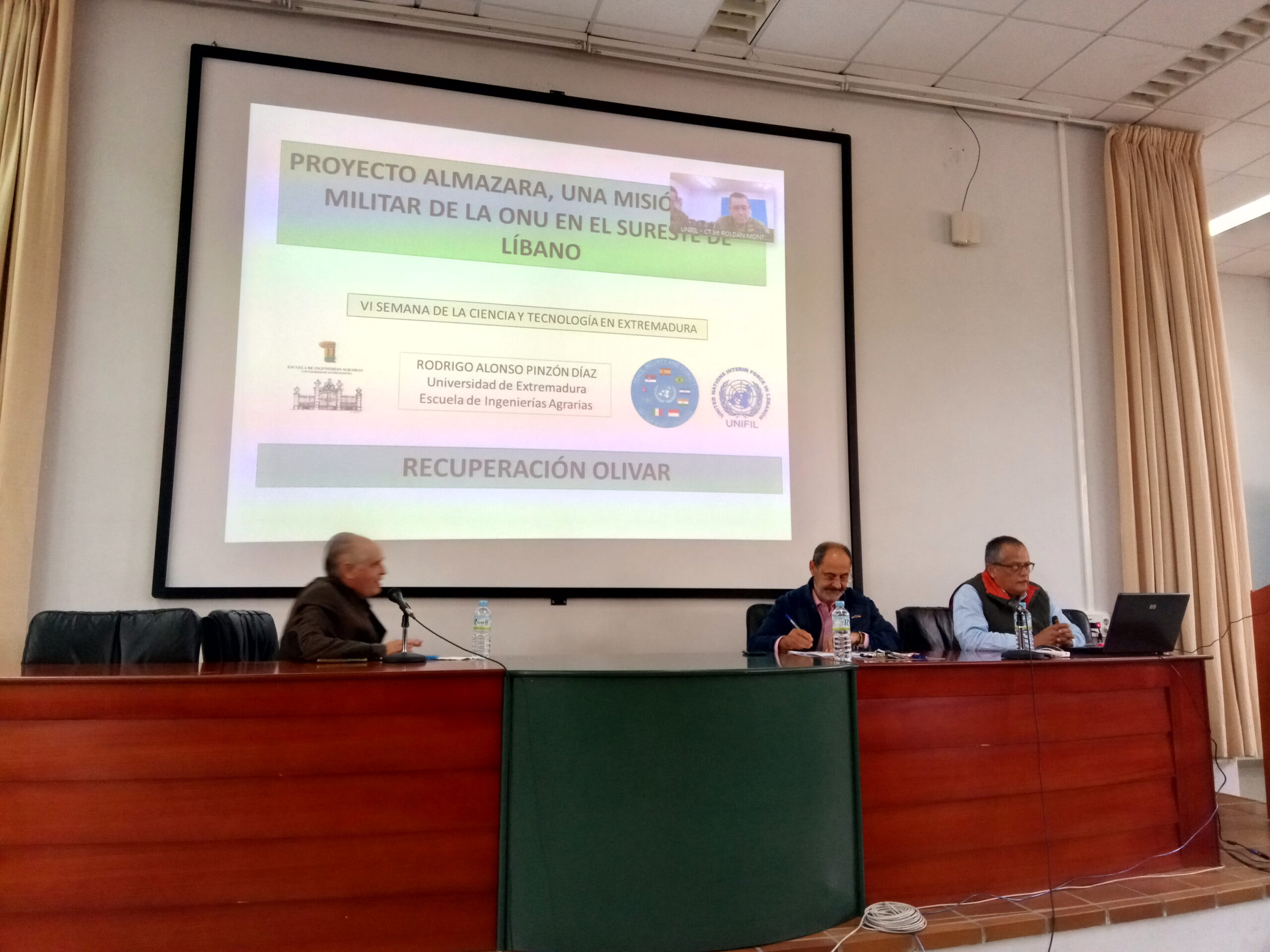 El 26 de noviembre de 2022, el Salón de Actos de la EIA acogió el evento «Proyecto Almazara, una misión cívico militar de la ONU en el sureste de Líbano». Varias de las personas que han participado en esta misión técnico-humanitaria tuvieron ocasión de narrar sus experiencias, tanto desde un punto de vista técnico como personal, acerca de lo que representa intentar mejorar cuidados de olivares ancestrales, su rendimiento, la calidad de las cosechas, y su procesamiento posterior para obtener aceite de oliva virgen de la mejor calidad posible. Todo ello teniendo en cuenta el recelo inicial mostrado por las personas que suelen laborear los olivos libaneses, por las connotaciones religiosas que acompañan a estos ejemplares ancestrales de olivo. Afortunadamente, el recelo inicial ha ido dejando paso a un trato cordial, cuando el equipo de profesores españoles ha repetido visitas en el tiempo y se ha podido comprobar el resultado satisfactorio de las técnicas aplicadas. |