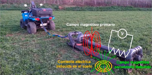 Sin necesidad de contacto físico con el suelo, el desplazamiento del sensor induce una corriente eléctrica, ya que el suelo se comporta como un conductor. La mayor o menor capacidad del suelo para conducir la corriente eléctrica hace que, en una segunda etapa, las corrientes inducidas generen un campo magnético secundario de magnitud proporcional que, añadido al campo magnético primario, acaban atravesando el campo magnético que forman las otras bobinas situadas en el otro extremo de la barra. Estas bobinas tienen devanados diferentes, uno en sentido vertical y el otro en sentido horizontal, lo cual hace que puedan captar la señal a diferentes profundidades. Así, el voltaje medido en estas bobinas estará relacionado con la CEa del suelo correspondiente a distintas profundidades y, por lo tanto, a distintos volúmenes del mismo.