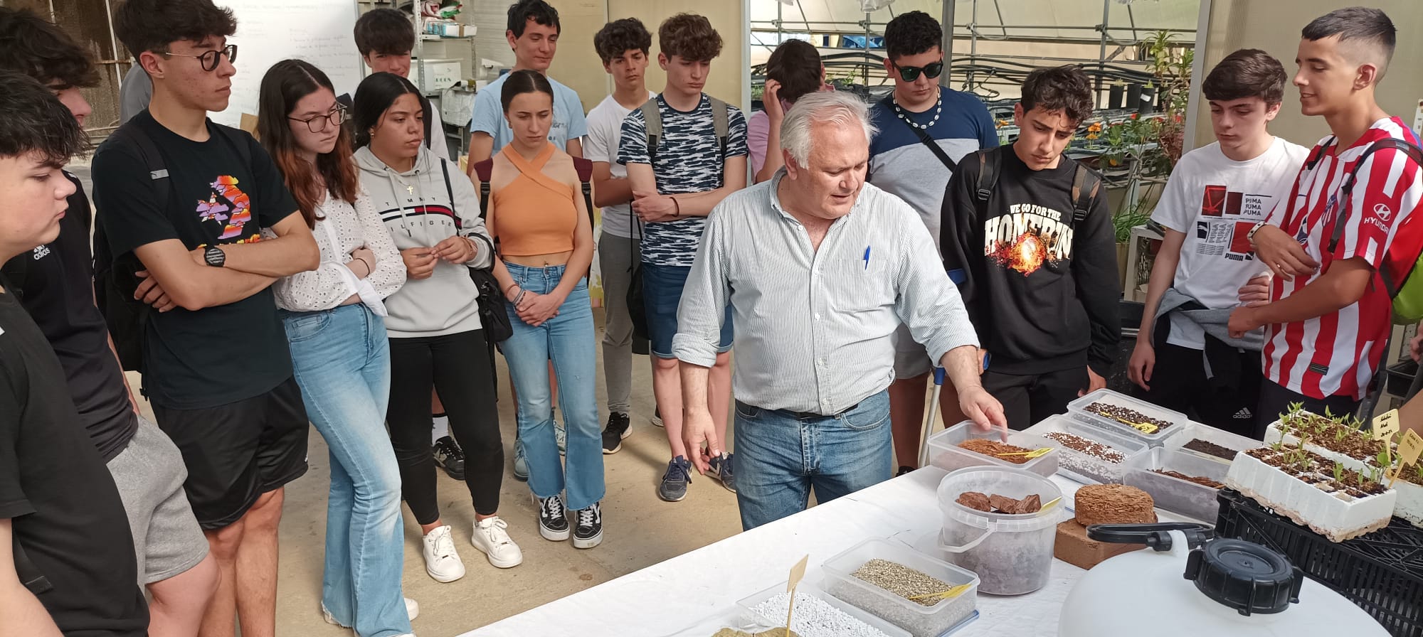 Durante la visita pudieron recorrer nuestras instalaciones: la nave de maquinaria, los cultivos exteriores, el invernadero, las plantas piloto industriales y los laboratorios.