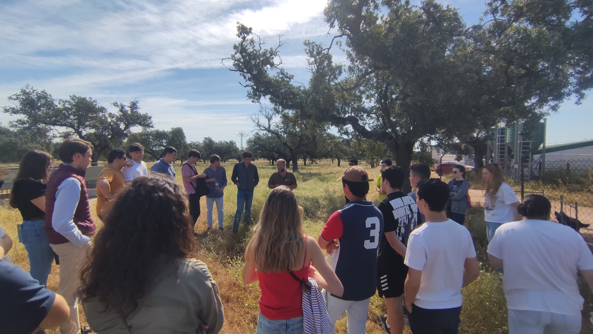 Los alumnos de la asignatura «Bases de la Producción Animal», con la profesora Paula Gaspar García han visitado la finca experimental de Valdesequera, perteneciente al Centro de Investigaciones Científicas y Tecnológicas de Extremadura (CICYTEX). Allí pudieron conocer los distintos ensayos que llevan a cabo los investigadores con el ganado autóctono que hay en la finca.