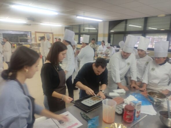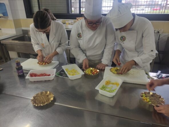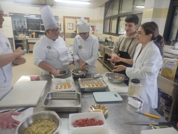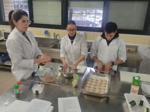 El pasado 16 de diciembre de 2025, nuestro alumnado del Grado en Ciencia y Tecnología de los Alimentos de la Escuela de Ingenierías Agrarias de la UEx desarrolló, junto a alumnado del IES San Fernando de Badajoz, una actividad en la que se elaboraron menús saludables previamente diseñados por los alumnos de la asignatura de Catering y Restauración del Grado de Ciencia y Tecnología de los Alimentos.