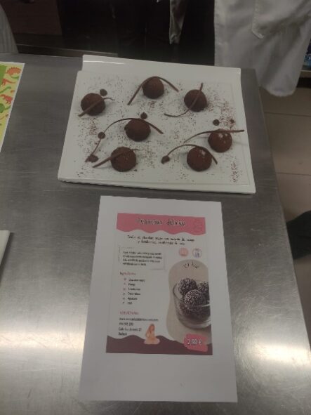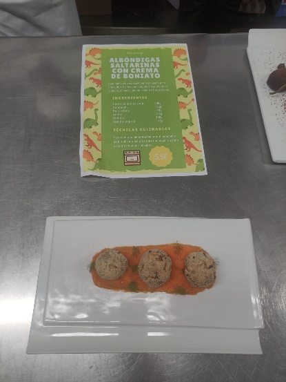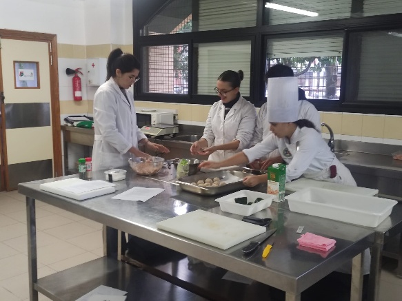 Una vez diseñado el menú, se eligieron los platos para su elaboración en el IES San Fernando, debiendo justificar dicha elección. Cada uno de los grupos elaboraron como mínimo uno de sus platos diseñados. Durante su elaboración en las cocinas del centro de secundaria, nuestro alumnado trabajó “codo con codo” con el de ciclos formativos de formación profesional del IES San Fernando, con una buena acogida por parte de ambos.